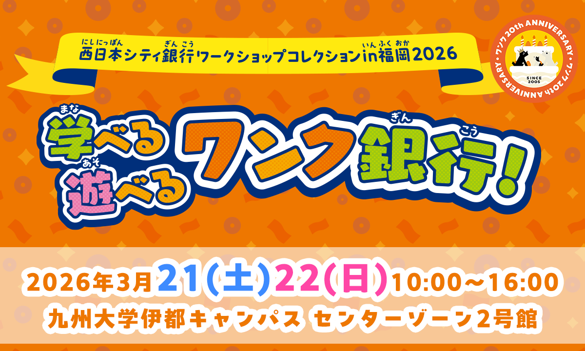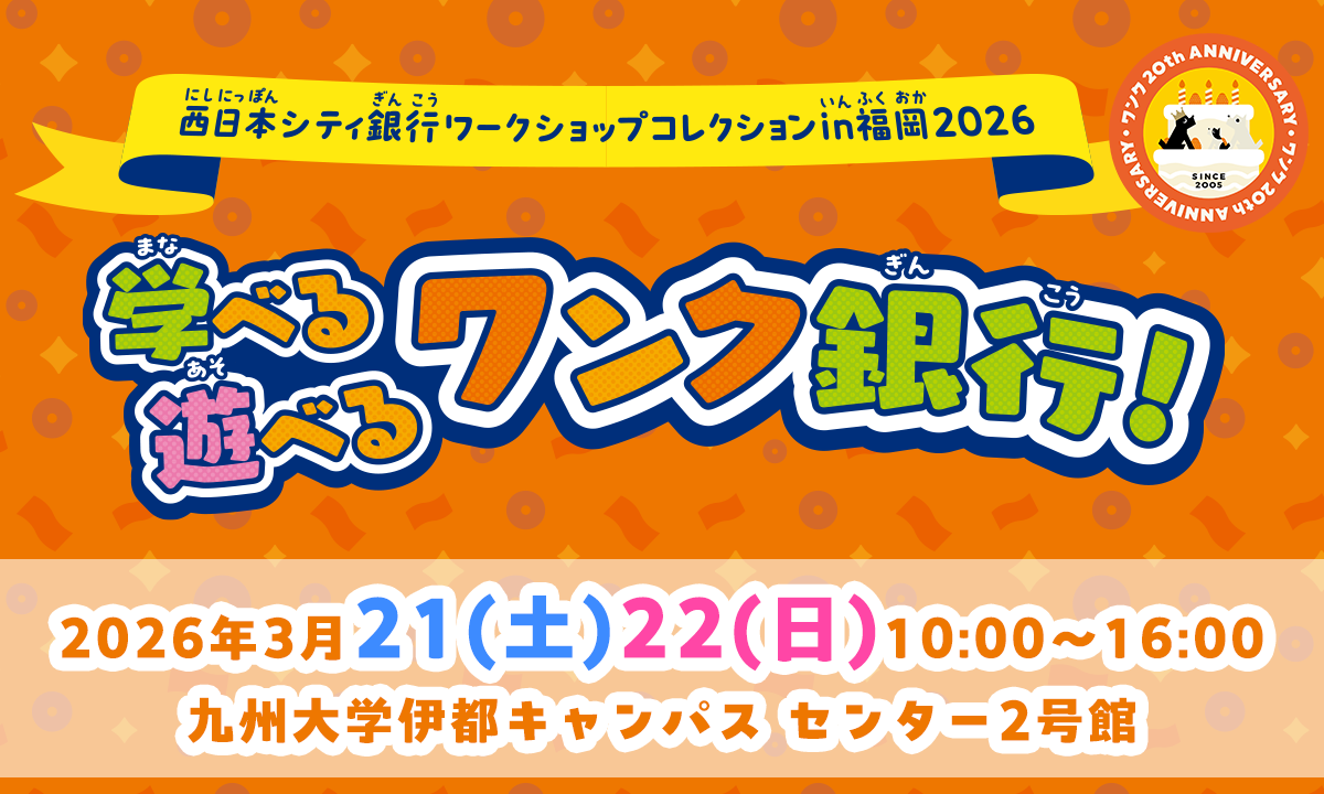 西日本シティ銀行は、子供たちを対象とした金融リテラシー教育支援を目的に、九州大学伊都キャンパスで開催される「ワークショップコレクションin福岡2026」にブース出展します!