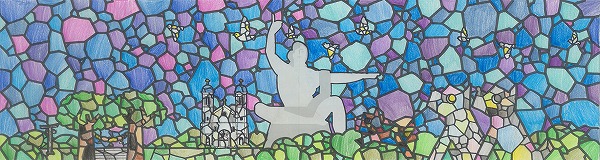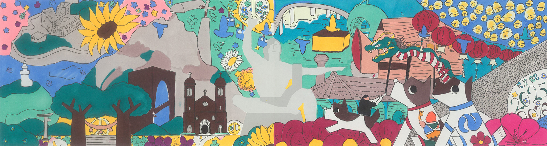 抽象的で繊細な色彩表現と、希望にあふれる平和な日常を見事に調和させています。細かなグラデーションまで丁寧に描き込まれた密度感のある描写から、明るい未来への真っ直ぐな意志と、この街、長崎を愛する情熱がしっかりと伝わってきます。