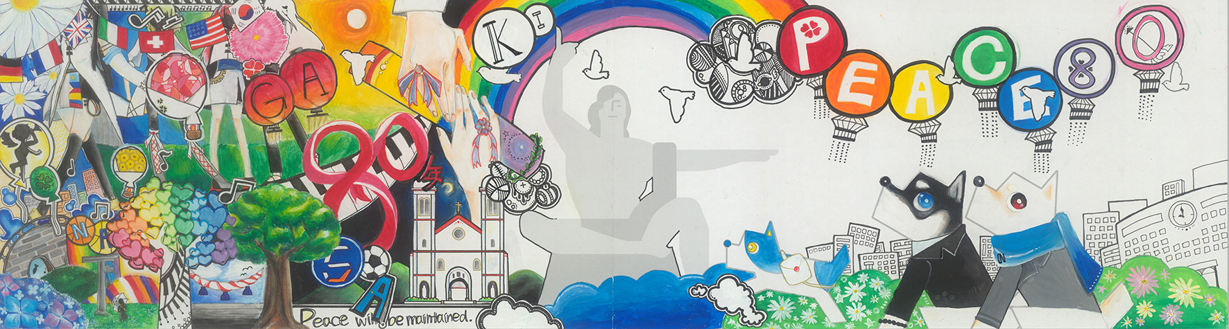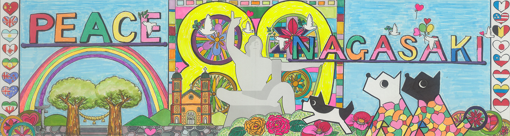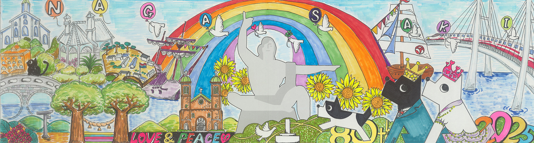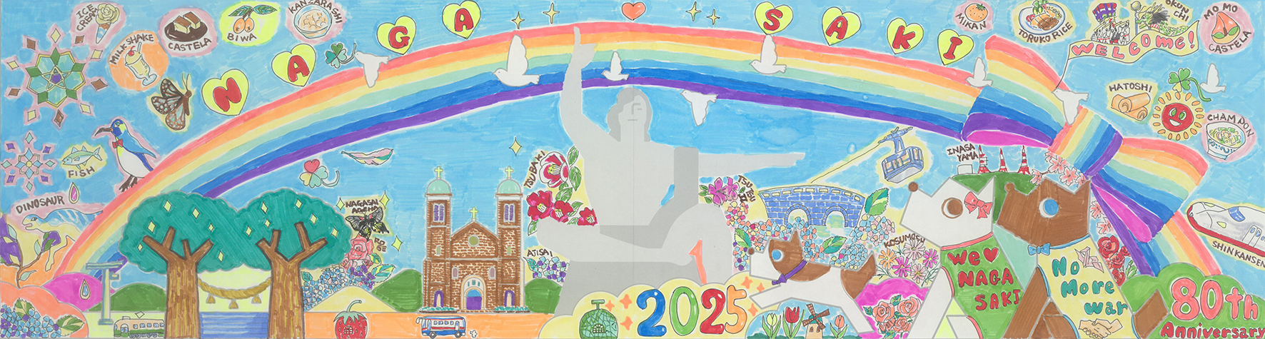 パステル調の優しい色彩とデザイン性の高さは、まるで海外のポップアートのようです。真ん中に配置された存在感抜群の「80」の文字。節目の年に「PEACE NAGASAKI」を願う思いが伝わりました。