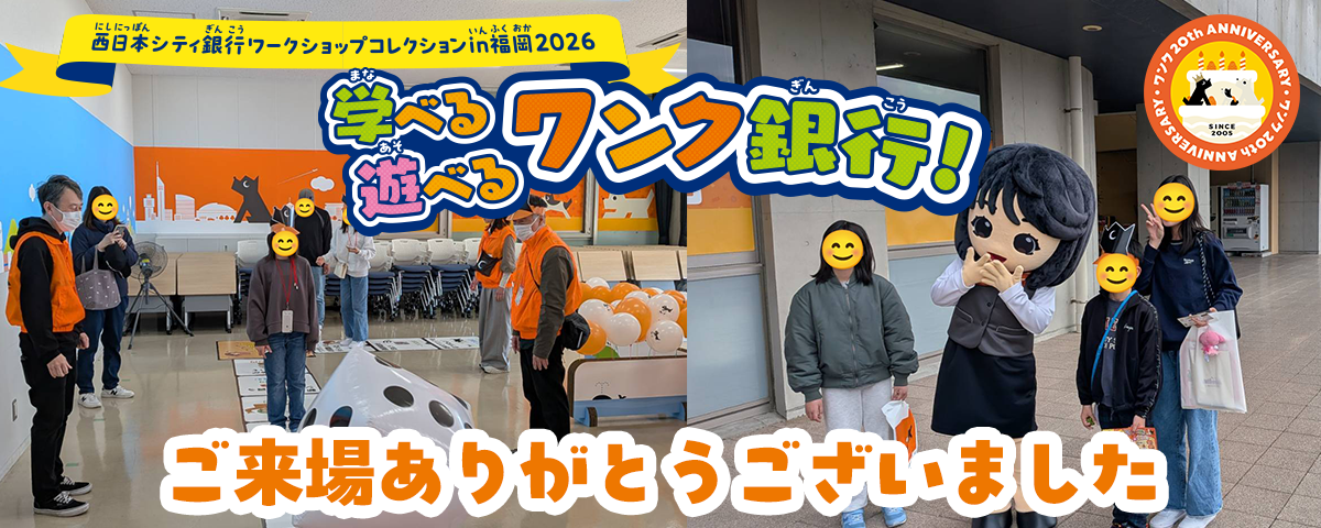 ワンク20歳記念「学べる遊べるワンク銀行」